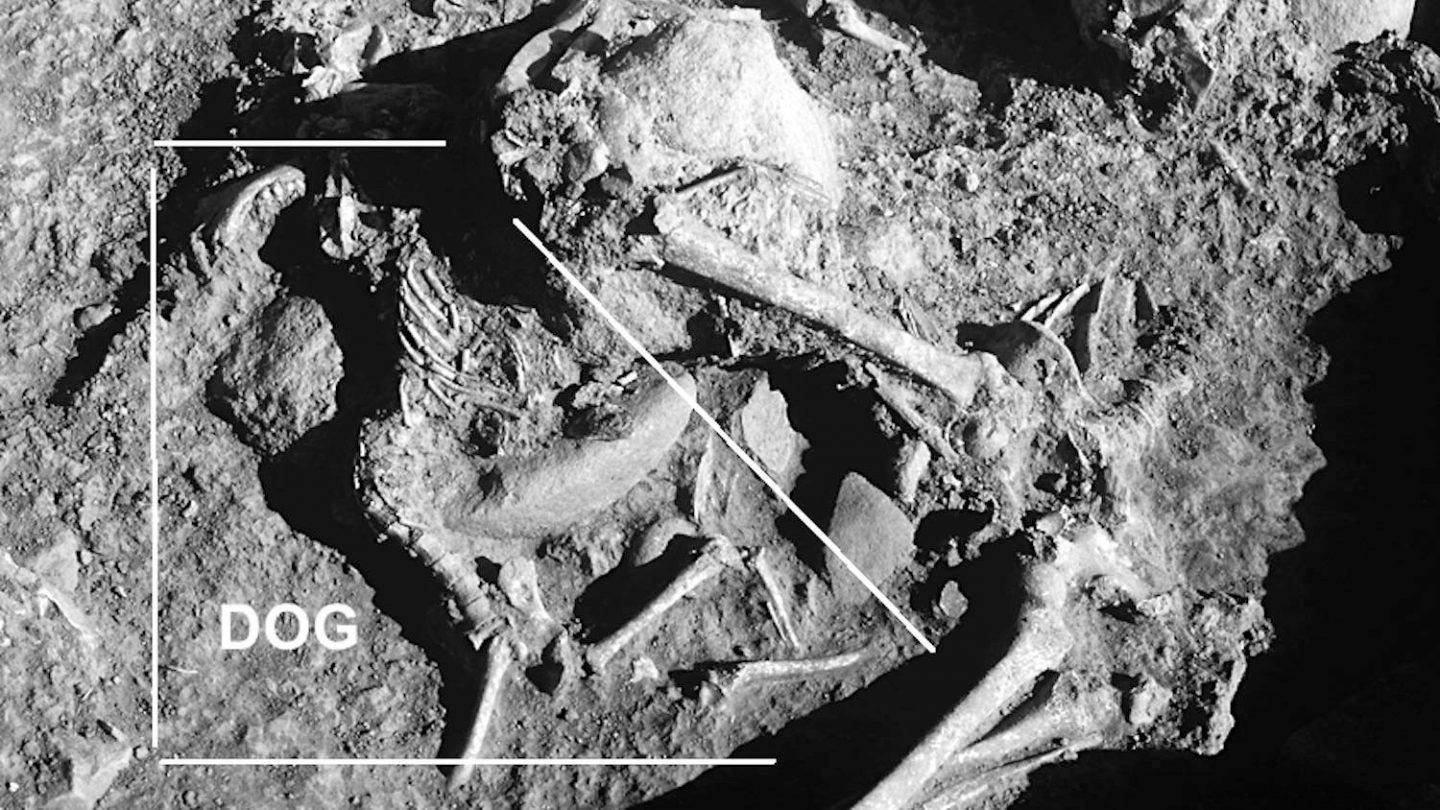 The dogs themselves were puppies, or around a year old, when they were interred. The bones showed no marks of butchery or evisceration. In death, the animals appeared to have been deliberately positioned close to, or touching, each corpse.