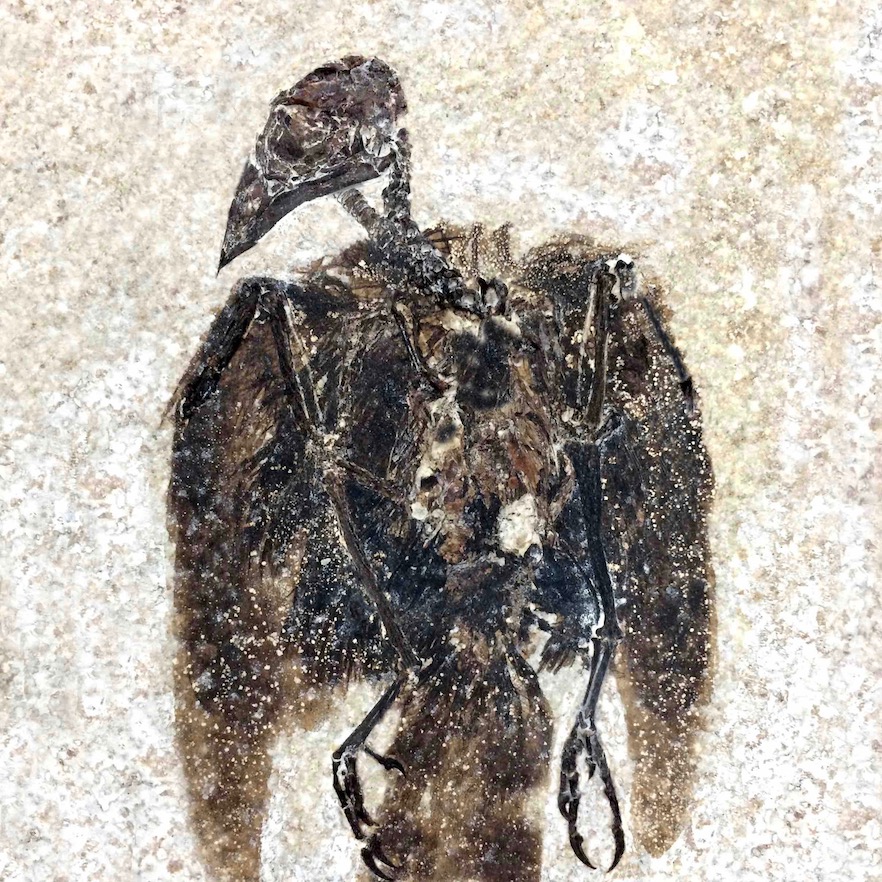“This particular piece is just exquisite. It is a complete skeleton with the feathers still attached, which is extremely rare in the fossil record of birds.”
