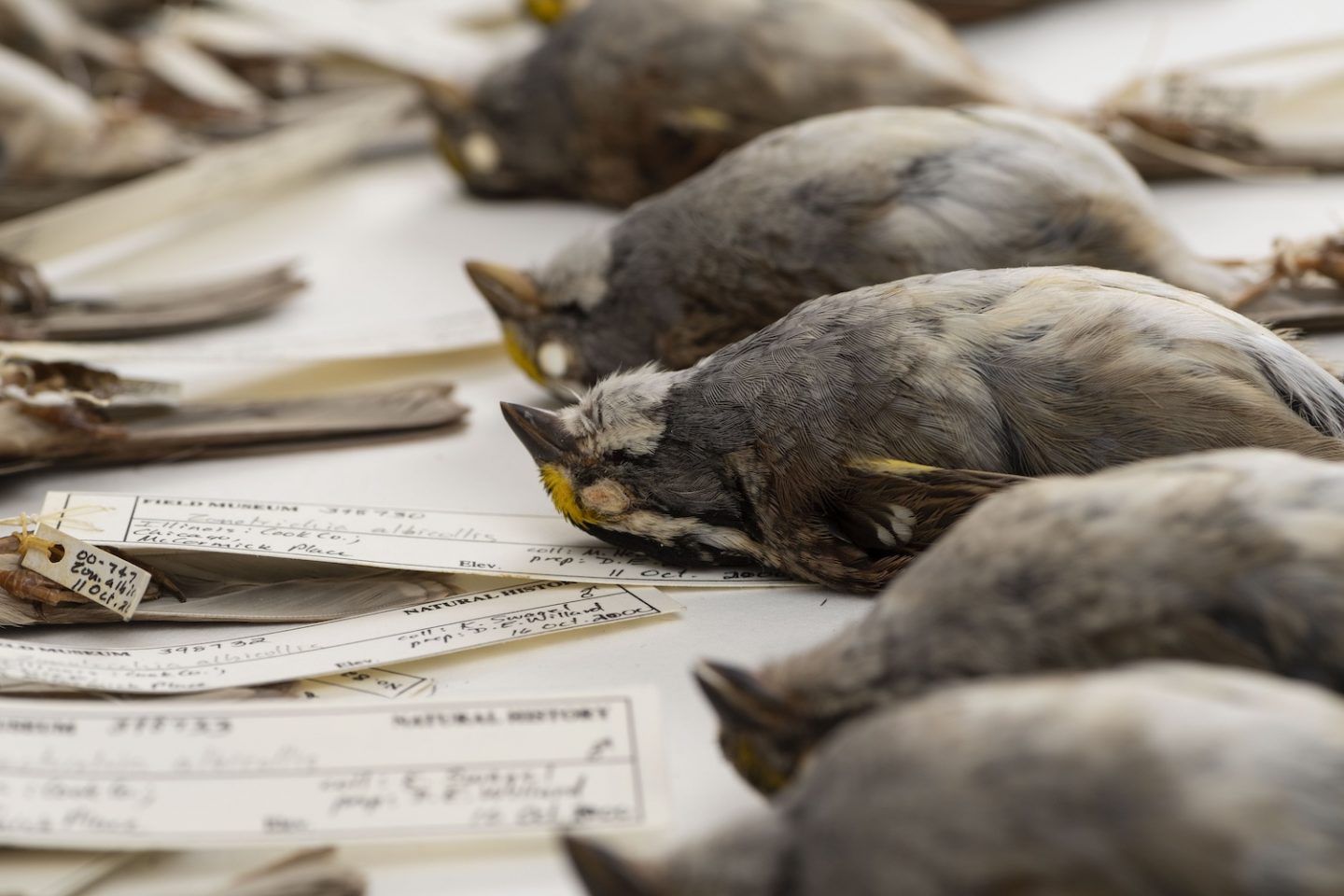 These white-throated sparrows (Zonotrichia albicollis) are but a few of a vast morgue of birds that died by colliding with very large buildings. They were analysed by researchers from the University of Michigan in the US.