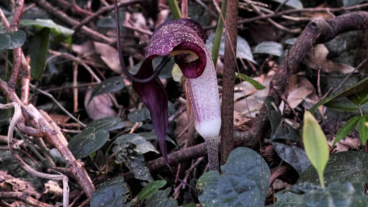 The lucky escape starts with a pitcher plant look-a-like named Arisaema thunbergia. The jack-in-a-pitcher plant produces a “subtle, musty scent detectable by humans”, which attract gnats trying to find fungi to feed on and lay their eggs. A cavity system inside the plant allows insects to enter the trap, but not easily leave again.