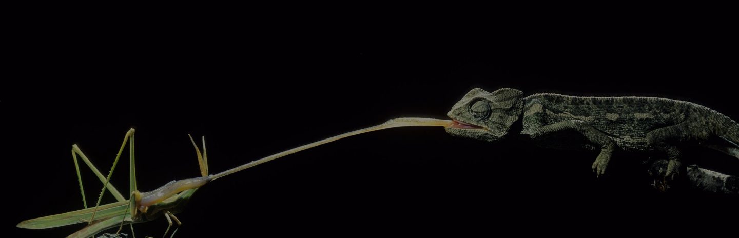 The blisteringly quick flick of a chameleon’s tongue can accelerate to 100 kilometres per hour in one hundredth of a second and extend two and a half times its body length to pluck an insect out of the air.